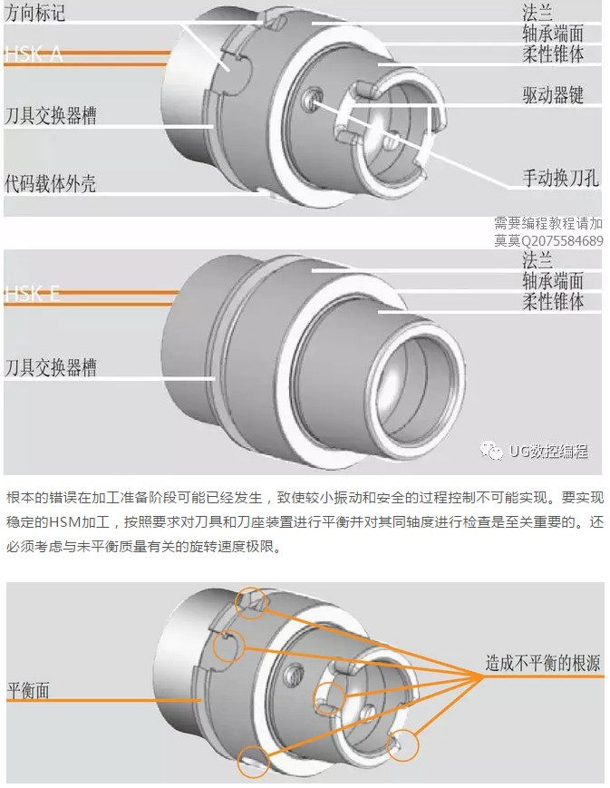 因为在 HSM CNC加工中心加工中需求很高的主轴速度,因而,最好运用HSK-A 和 HSK-E 刀座体系。因为刀座法兰安装在主轴头上,刀座在 Z 方向上有清晰的机械支撑,因而,在较高转速下,不会因离心力增大而拖进主轴。